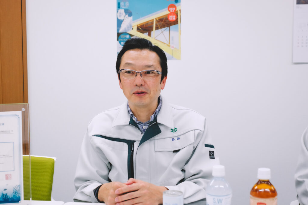 そして今年は、こうした協賛に加えて、ブルーカーボンクレジットを活用した地産地消型のカーボン・オフセットにも協力をいただいています。地域の自然や環境と向き合う取り組みに、企業としてどのような思いで関わっているのか。丸善製薬の砂田さんと西垣内さんに、せとだレモンマラソン実行委員会の小林と岡野がお話を聞きました。