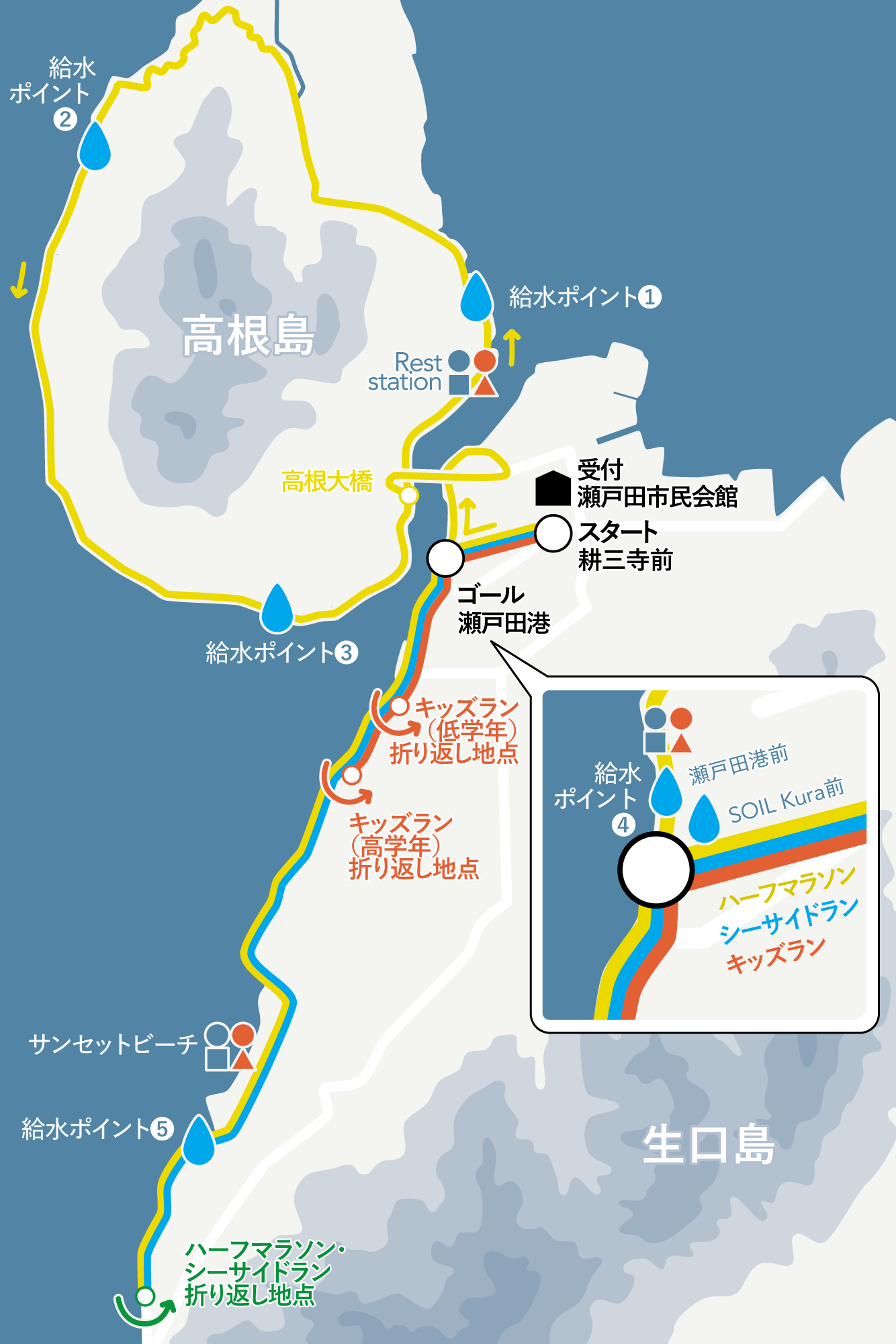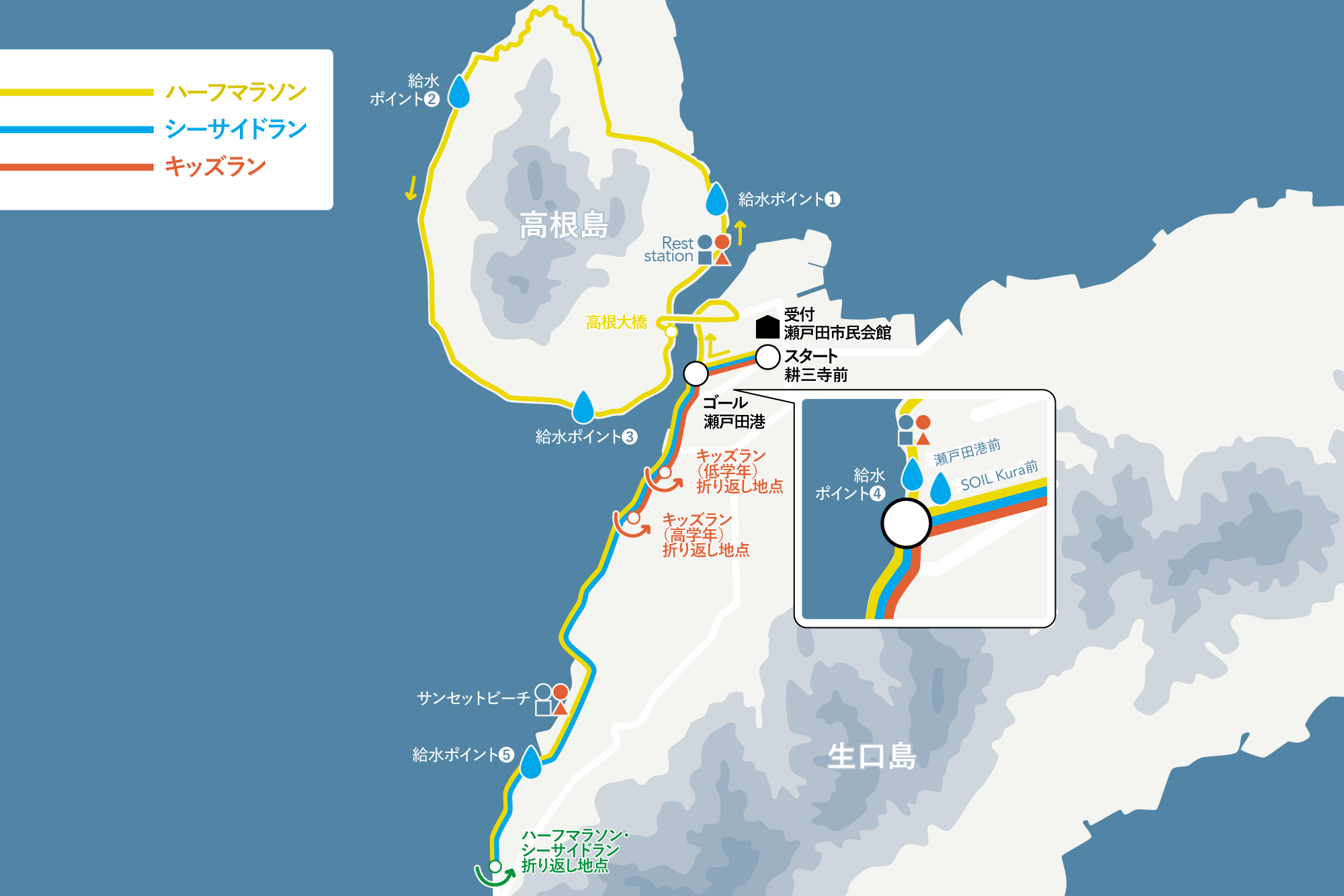 シーサイドを走った後に、最後は瀬戸田港にゴールする大人顔負けのコースになっています。
